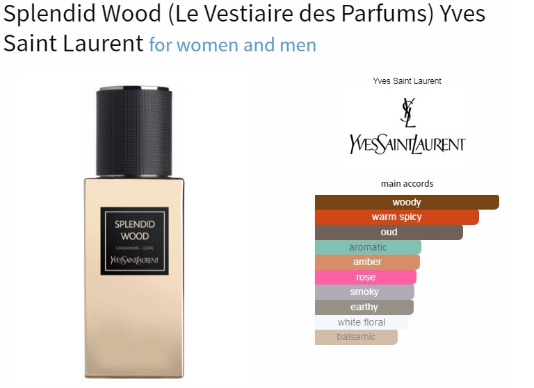 عطر ادکلن ایو سن لورن (وای اس ال) اسپلندید وود (له وستیه دس پارفومز) ادوپرفیوم مردانه-زنانه Yves Saint Laurent (YSL) Splendid Wood (Le Vestiaire des Parfums) Unisex EDP عطری است که با رایحه گرم و تند که در سال 2017 به بازار عطر و ادکلن عرضه شد.