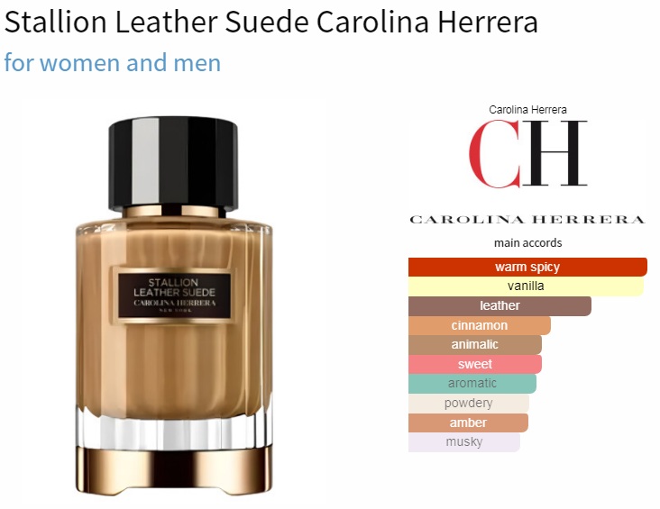 ماندگاری و خط بو عطر ادکلن کارولینا هررا (سی اچ) استالین لدر سوئده-سوید ادوپرفیوم مردانه-زنانه Carolina Herrera (CH) Stallion Leather Suede Unisex EDP: