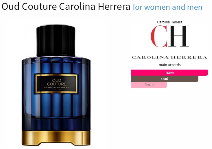 عطر ادکلن کارولینا هررا (سی اچ) عود کوتور ادوپرفیوم مردانه-زنانه Carolina Herrera (CH) Oud Couture Unisex EDP عطری است گرم و تند و شیرین با گروه بویایی شرقی-گُلی که در سال 2015 به بازار عطر و ادکلن عرضه شد.